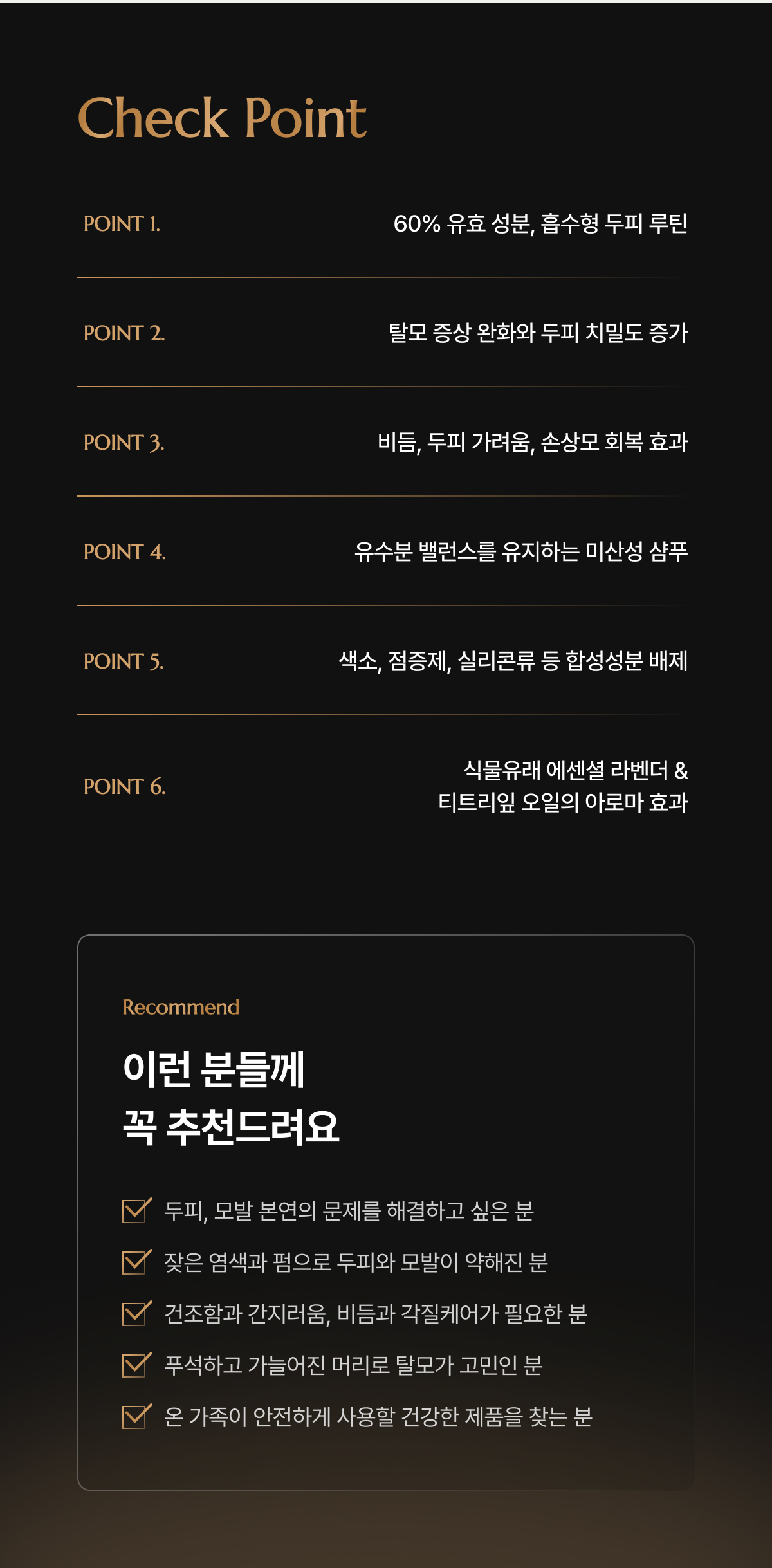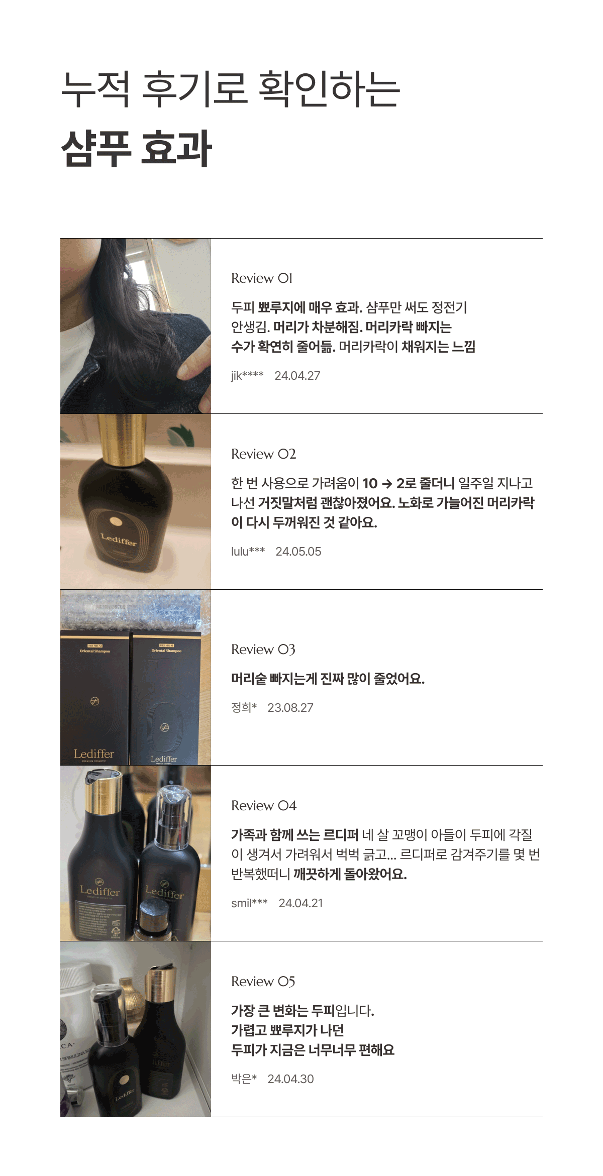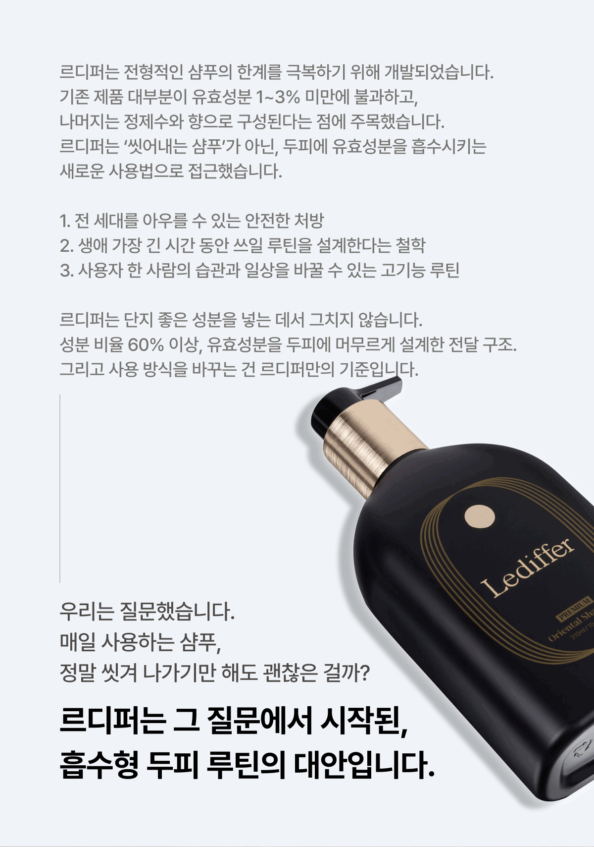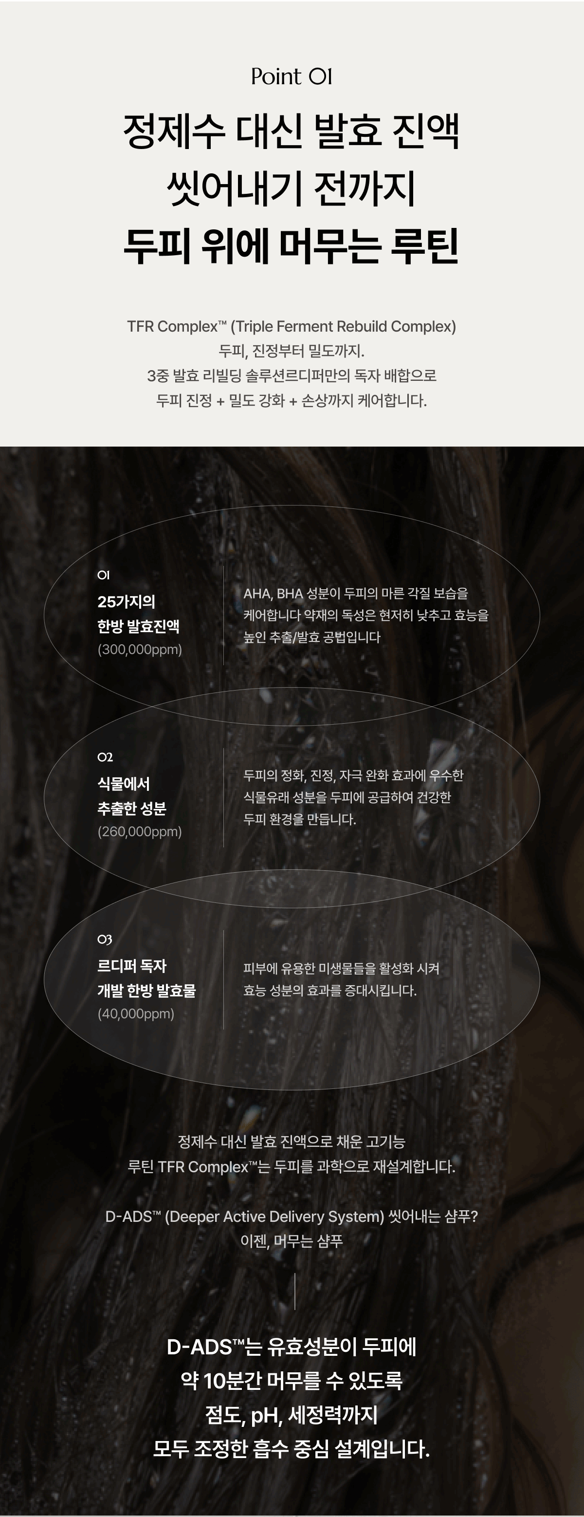 30여 가지의 천연 성분들로 추출과 발효 과정을 거처 담아낸 귀한 헤어 레시피로 임상시험에서 가장 안전한 평가를 받은 신개념 샴푸